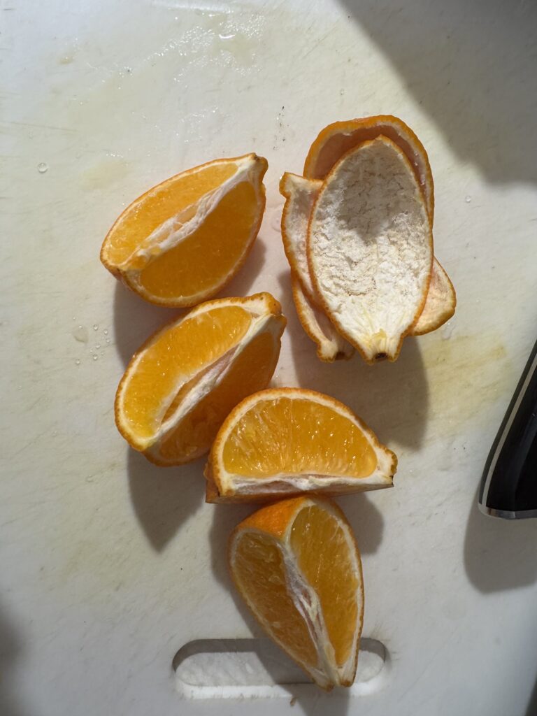ちなみに、オレンジ買ってくるの忘れたのでミカン(マンダリンオレンジ)の皮で代用。