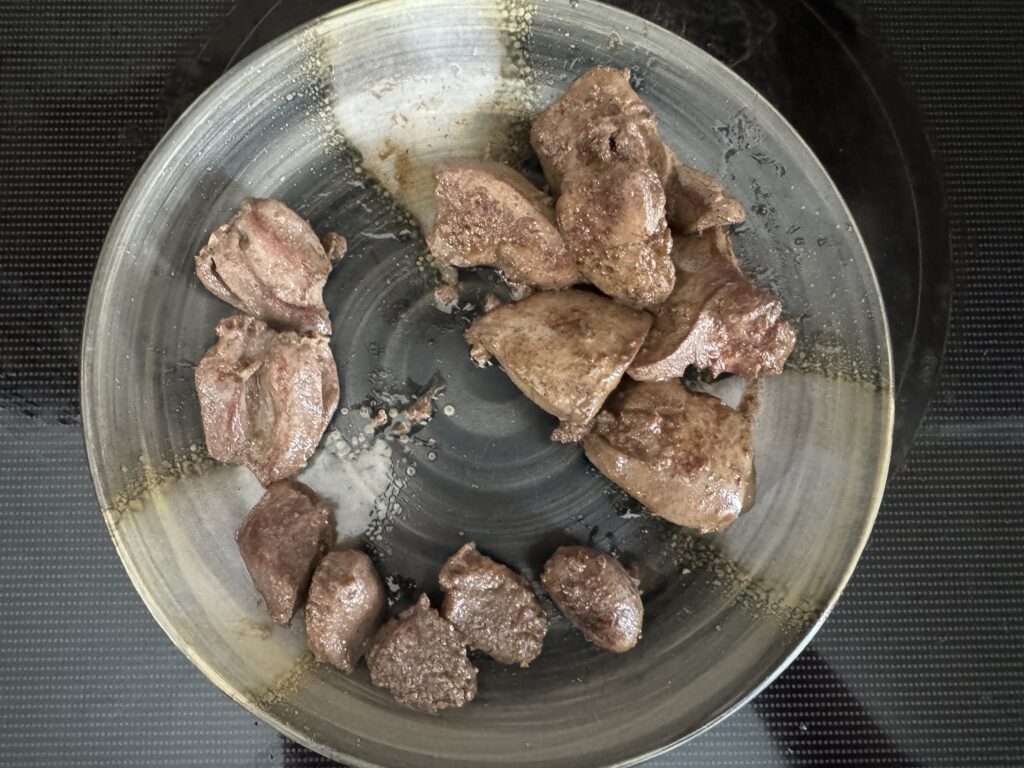 イタリア系移民なんかは牛の胃袋とか砂肝とか食うから、そのへんまではグロッサリーストアの片隅においてあったりするが、ハツはまぁ普通のスーパーにはおいてないので、これをただダシにするのは勿体なすぎる。