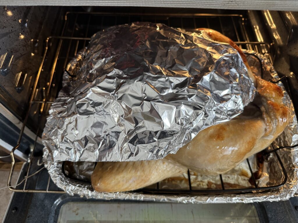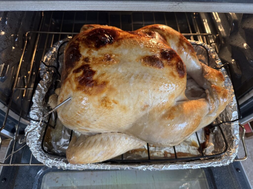 11)温度計が161°F(72°C)になったらすぐにトリをオーブンから出し、15分以上おく