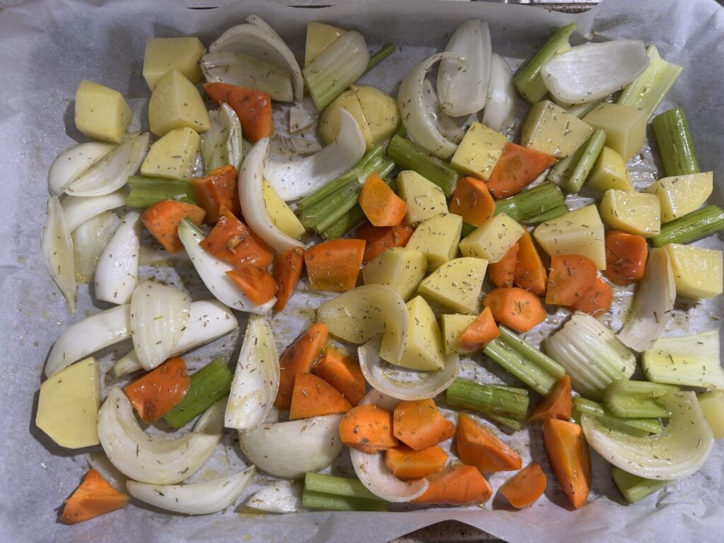 - 付け合わせにするロースト野菜を切ったもの