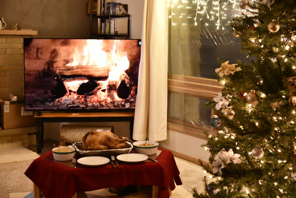 ウチには一応暖炉があるんだが、前の家主も一度も使ったことがない、という話で、使えるようになるまでメンテすんのにいくらかかるのか不明のため、暖炉が欲しいときはテレビに暖炉の代わりをしてもらっている。