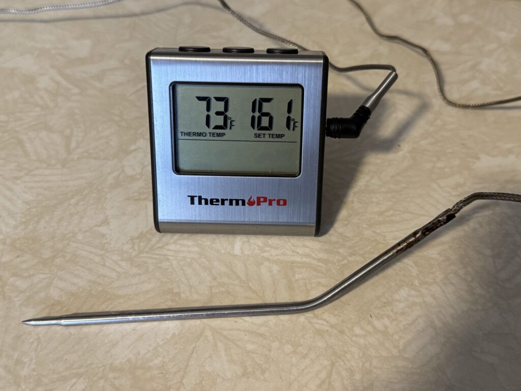 そのためにプローブには長い耐熱コードがついてるんだが、安物を買うとこのコードの被膜がビニール製で、耐熱のはずなのにオーブンの扉で挟まれた部分が焦げることがある。
